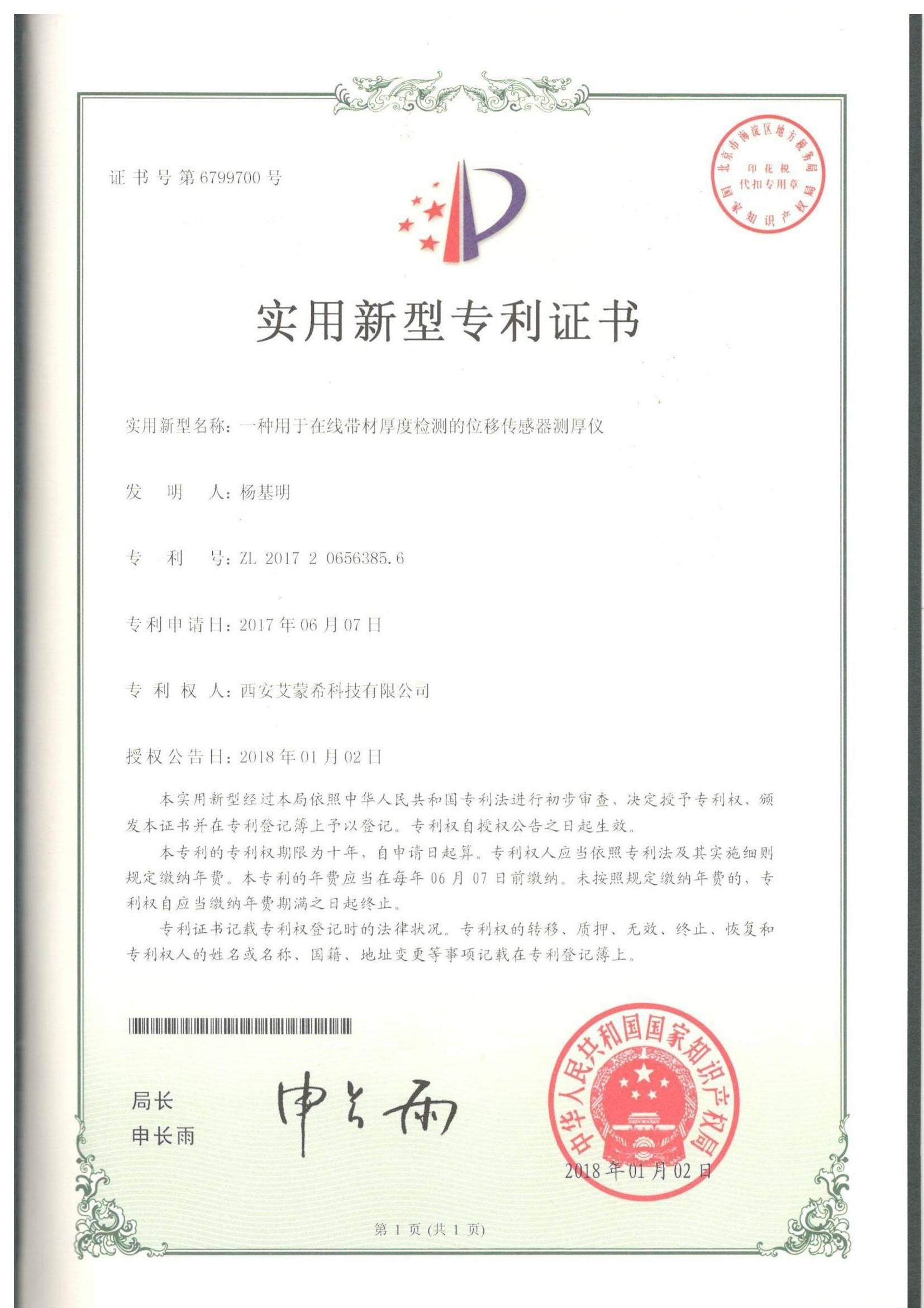 實用新型:一種用于在線帶材厚度檢測的位移傳感器測厚儀